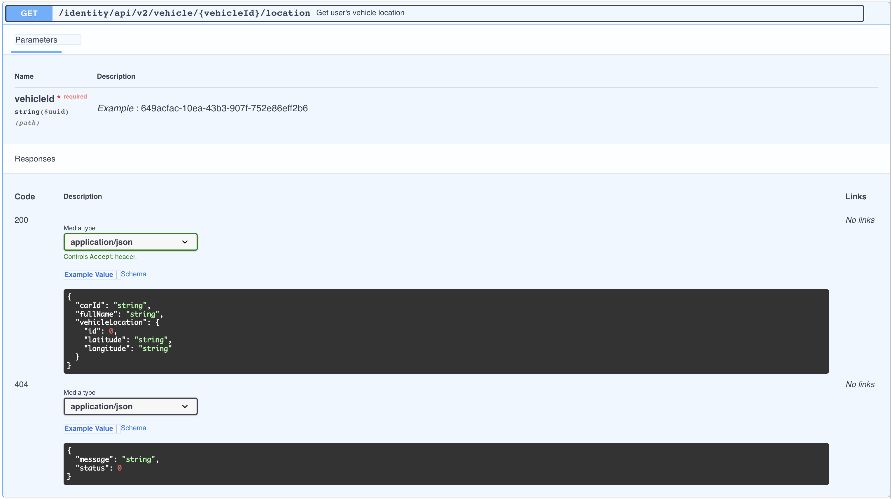Above is an example of an API endpoint that has {vehicleId} as a path parameter. This endpoint checks if the vehicle specified by the {vehicleId} is present in it's database.